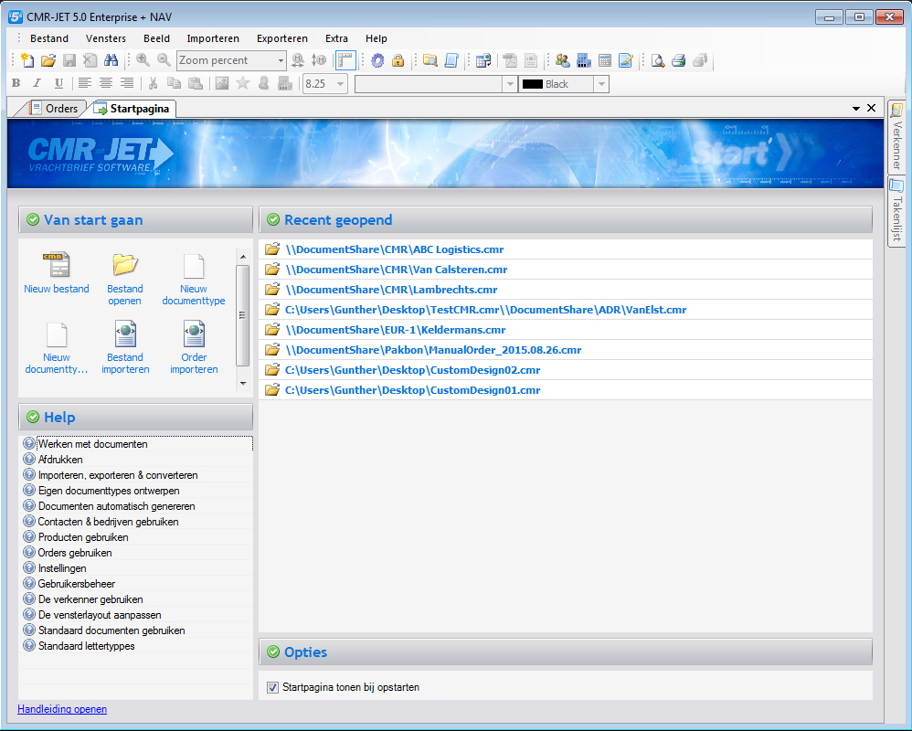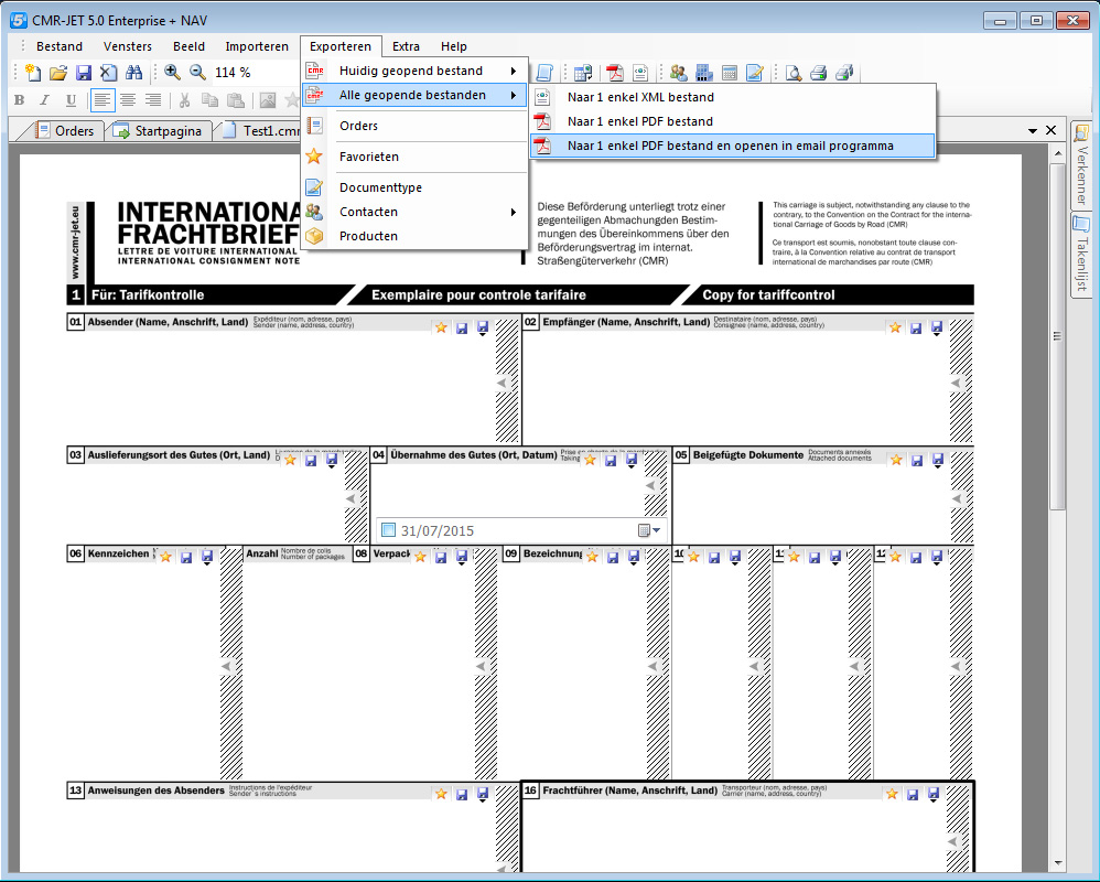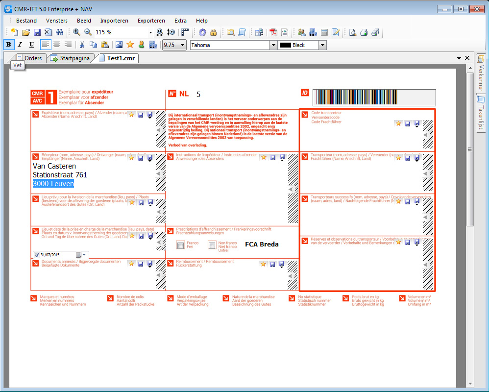CMR-JET is de toonaangevende oplossing voor het invullen, afdrukken, ontwerpen, delen en archiveren van uw vrachtbrieven en documenten. Bovendien kan u CMR-JET op meerdere manieren koppelen met uw bestaand WMS- of ERP systeem zodat u uw documenten nog sneller en makkelijker kan genereren en afdrukken. |
