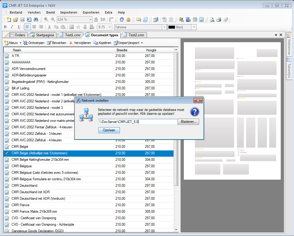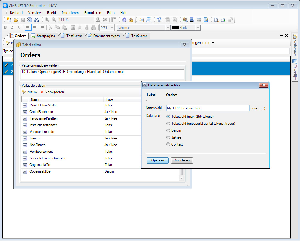 Ontwerp zelf nieuwe documenttypes (CMR, DGD, BoL etc) met verschillende soorten velden (tekst, datum, etc)